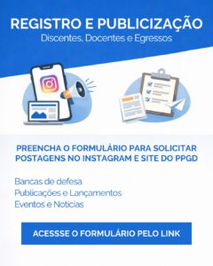 Docentes, discentes e egressos do PPGD: este espaço foi criado para facilitar o envio de solicitações de divulgação no Instagram e no site do Programa.